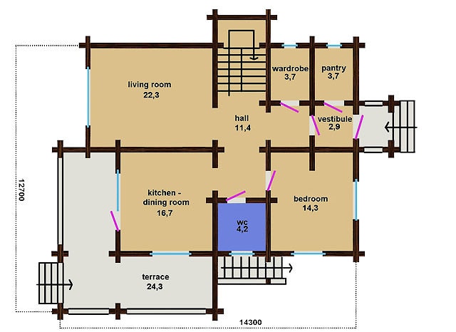 Powierzchnia netto 227 m2 Piętrowy dom z okrągłych bali o średnicy 26 cm, ma sześć pokoi, łazienki, spiżarkę i taras. Powierzchnia zabudowy ma 227,50 m2, natomiast powierzchnia mieszkalna 105,50 m2. Powierzchnia parteru ma 136 m2, pierwsze piętro – 91,50 m2, kubatura – 147,93 m3. Drewniany dom Ilość pokoi – 6 Powierzchnia mieszkalna – 105,50 m2 Powierzchnia zabudowy – 227,50 m2 Powierzchnia dachu – m2 Powierzchnia parteru – 136 m2 Powierzchnia pierwszego piętra – 91,50 m2 Kubatura – 147,93 m3 Materiał (możliwy jest wybór według żądanie klienta) – lite bale okrągłe naturalnej wilgotności o średnicy 260 mm. Jeśli chodzi o filmy, mimowolnie przypominają najlepszych filmów ostatnich lat. Szczególnie miłe i szczere rozmowy odbywają się w wiejskim domu, zaprojektowany przez "Home Studio", który jest oferowany przez naszą firmę. To jest dom z bali - pralnia, zaokrąglone, wysokiej jakości. W razie potrzeby, projekt ten może być wykonany z suchego drewna profilowanego lub Fornir klejony warstwowo technologii suszenia. Właściwie bez względu na materiał ściany zostaną wybrane, najważniejsze jest inna: to jest dom, w którym każdy koneser kina będą czuć się w swoim żywiole. To będzie w pełni przyczynić się do przestronne (22 mkw), pokój dzienny, gdzie można utworzyć film strefy, rodzaj kina domowego. Dyskusję na temat filmów można oglądać łatwo organizować lub na tarasie, popijając gorącą kawę lub w jadalni, najlepiej połączonego z kuchnią. Kup "Studio Home" i stać się autorem intymnych rozmowach Wśród przyjaciół, która na pewno powiedzieć "dziękuję" i przychodzą do was ponownie. Nasza firma jest gotowa do zaoferowania budować ten dom w atrakcyjny i wygodny dla naszych klientów tak niskie. projekt domu "Home Studio" podłogi. Jego całkowita powierzchnia - 227.50 m² i przestrzeń życiową - 105.50 m². Sześć pokoi pozwoli pomieścić dużą liczbę gości, która zawsze będzie ciepła, ponieważ wiązka ma średnicę 26 cm - wystarczy, aby zapewnić niezawodne barierę nawet syberyjski mróz. 147.93 metrów sześciennych dzienników potrzebne do budowy domu.